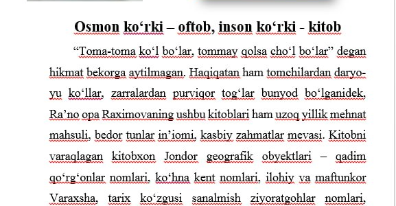 Kitob muallifi — Jondor tumani hokimining ma’naviyat va davlat tili masalalari bo‘yicha maslahatchisi Ra’no Raximova